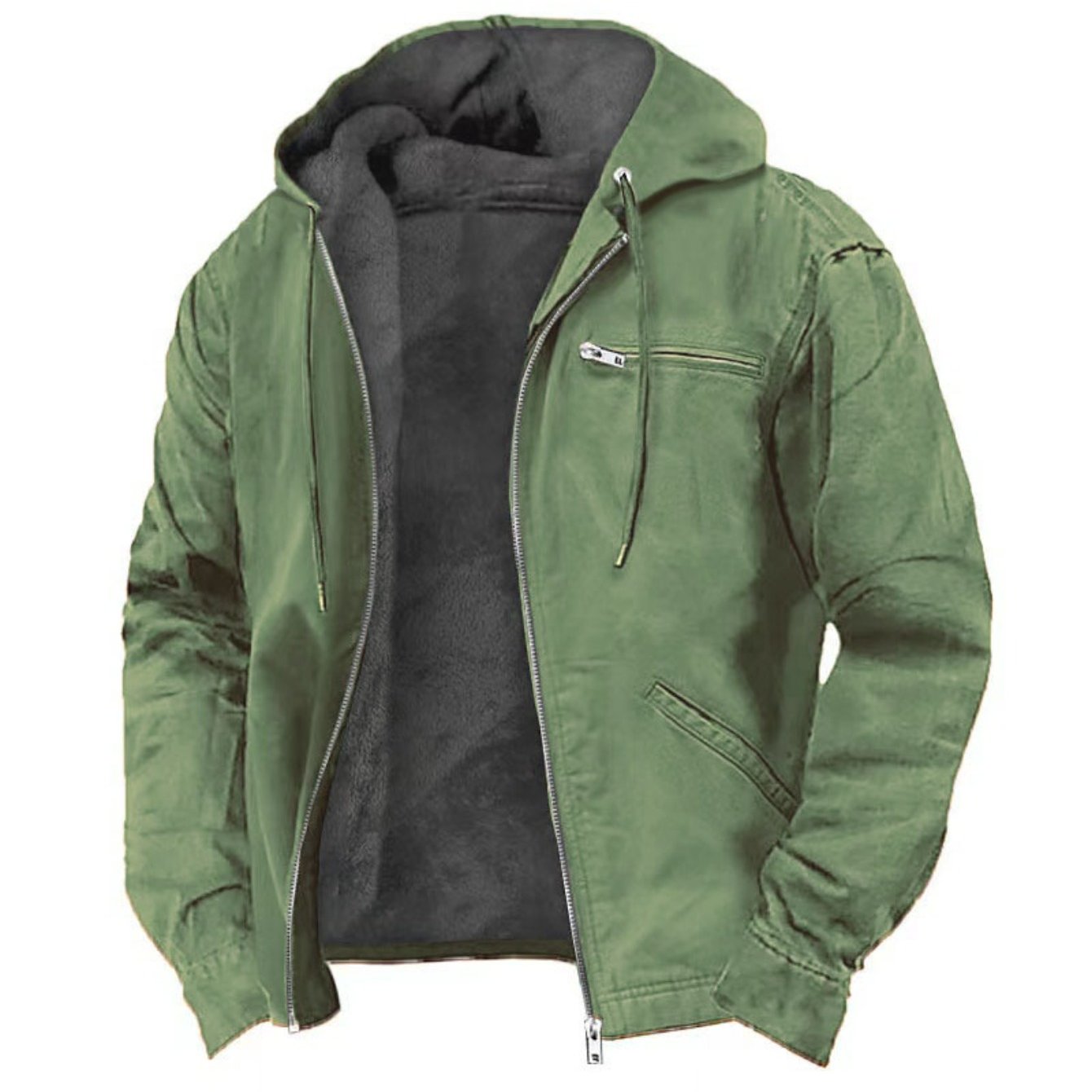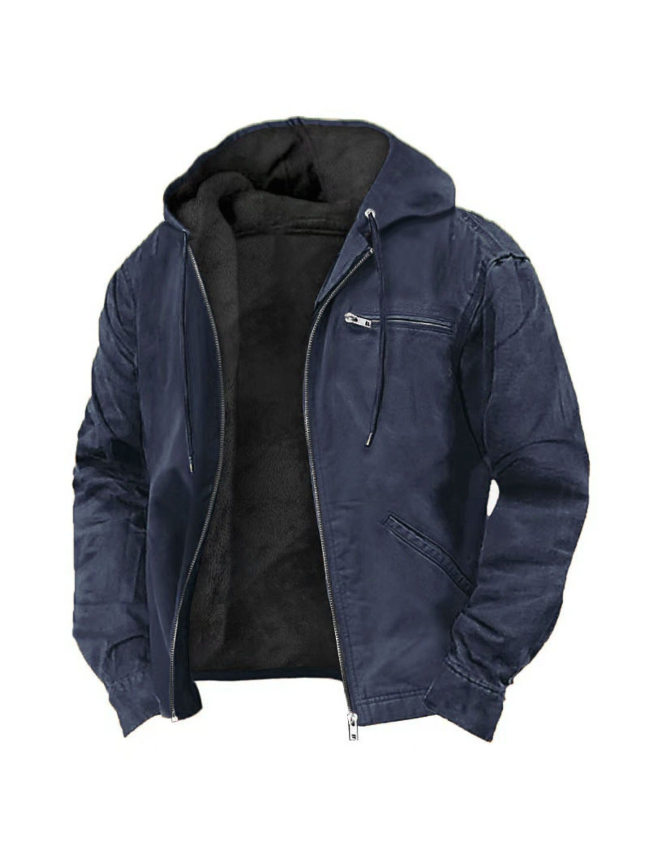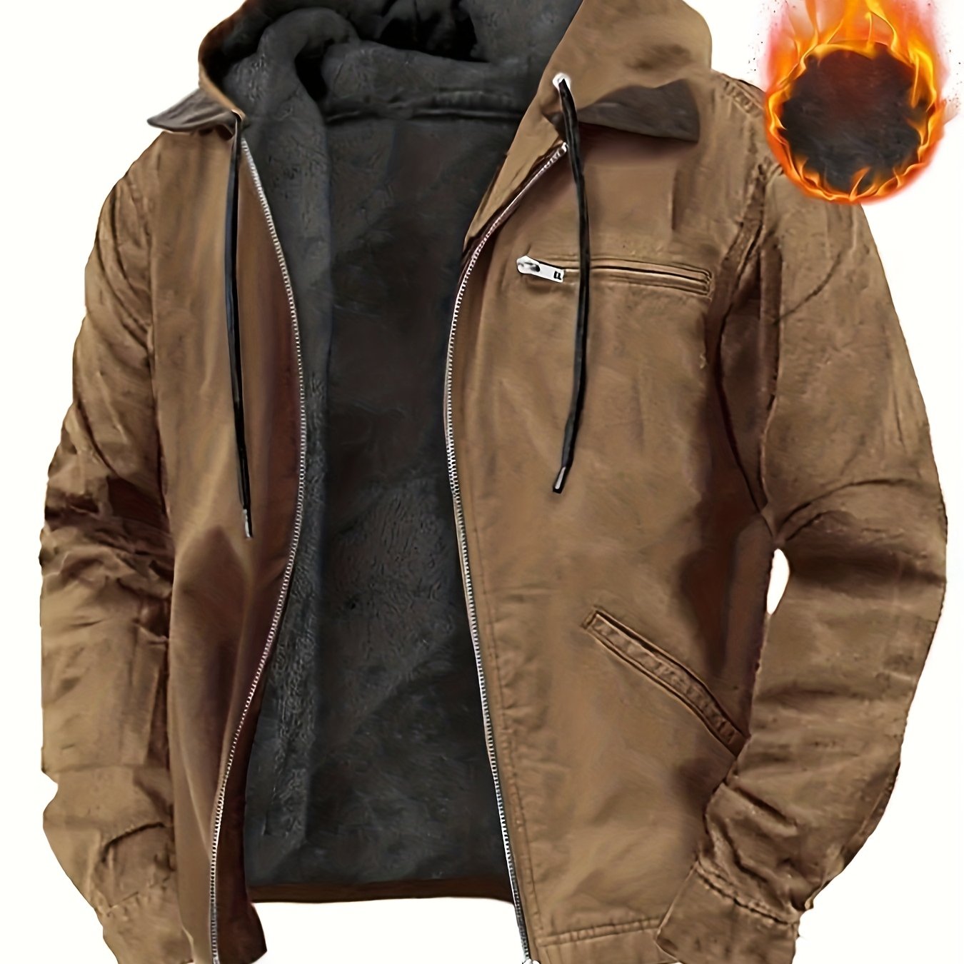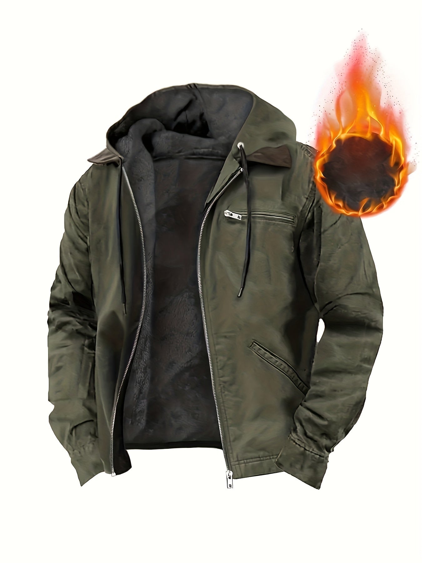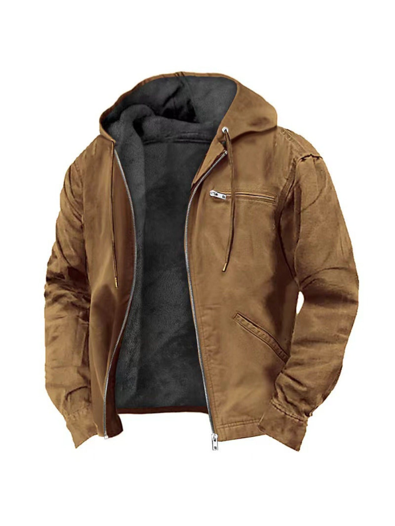 Men's Vintage Full-Zip Hooded Jacket - Windproof Winter Coat with Full-Zip Closure, Loose Fit Casual Outerwear, Machine Washable Polyester Lining, Cold Weather Clothing, Classic Design, Durable Fabric, Outdoor Enthusiasts