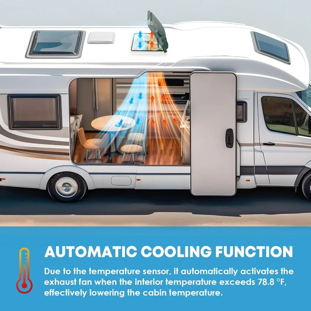 It includes built-in temperature sensor that automatically activate the rv exhaust fan when the interior temperature exceeds 78.8°F and turn it off when lowers 78.8°F.