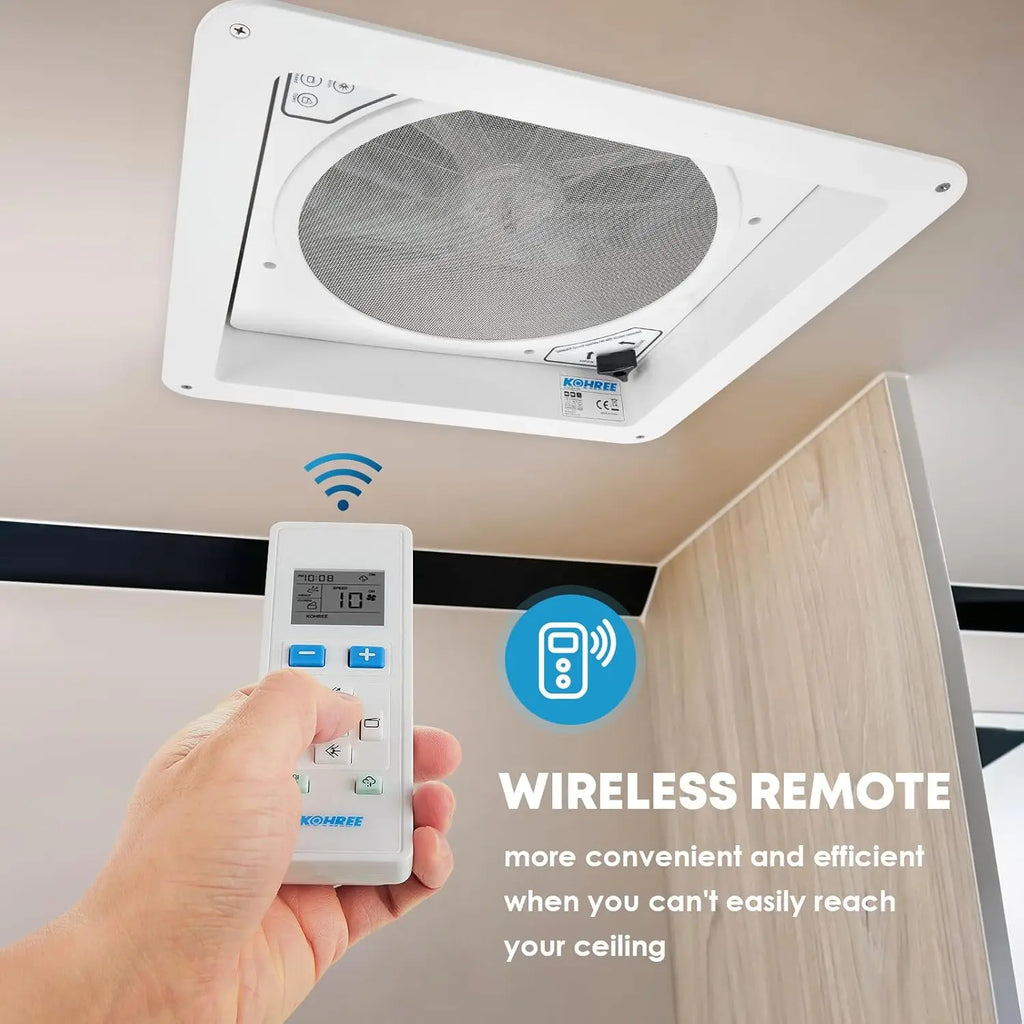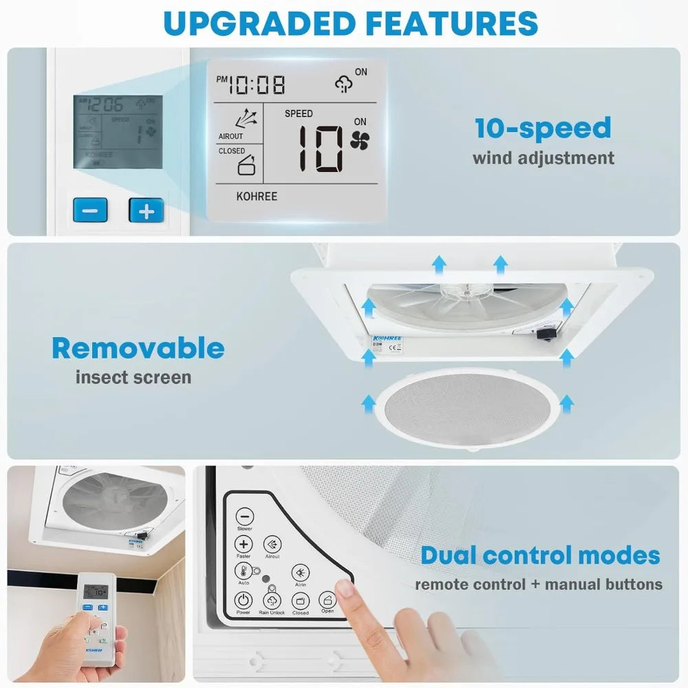 14" RV Vent Fan 10 Speed Reversible: 12V Super Quiet RV Roof Vent Fan for Camper Trailer Bathroom, RV Exhaust Fan with Remote Control, Temperature & Rain Sensor, Removable Screen
