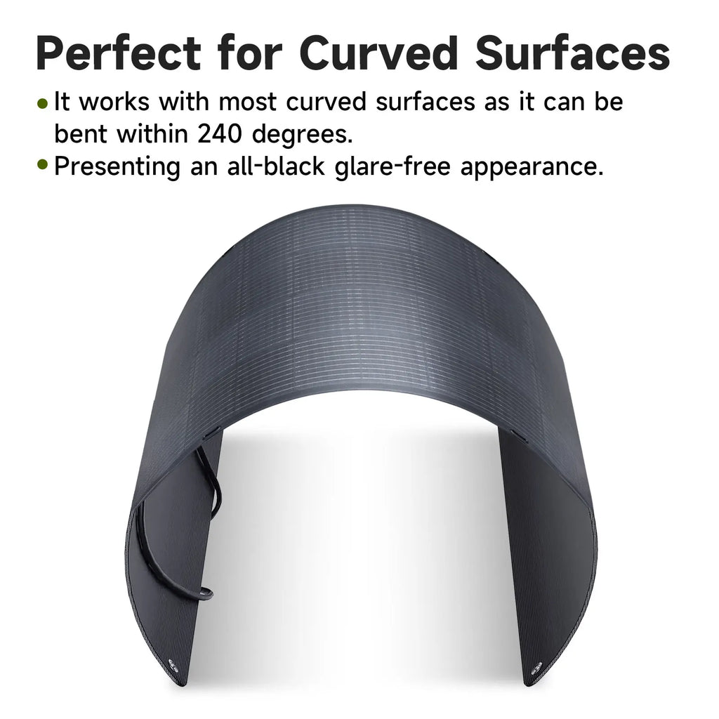 【Easy to Install and Use】Multi-Contact 4 output connectors can be used for any power station or home solar system. The included 6 straps and curved design allow it to be installed on trailer, RV, boat, cabin, tent, car, truck, yacht, roof or any other irregular surface.