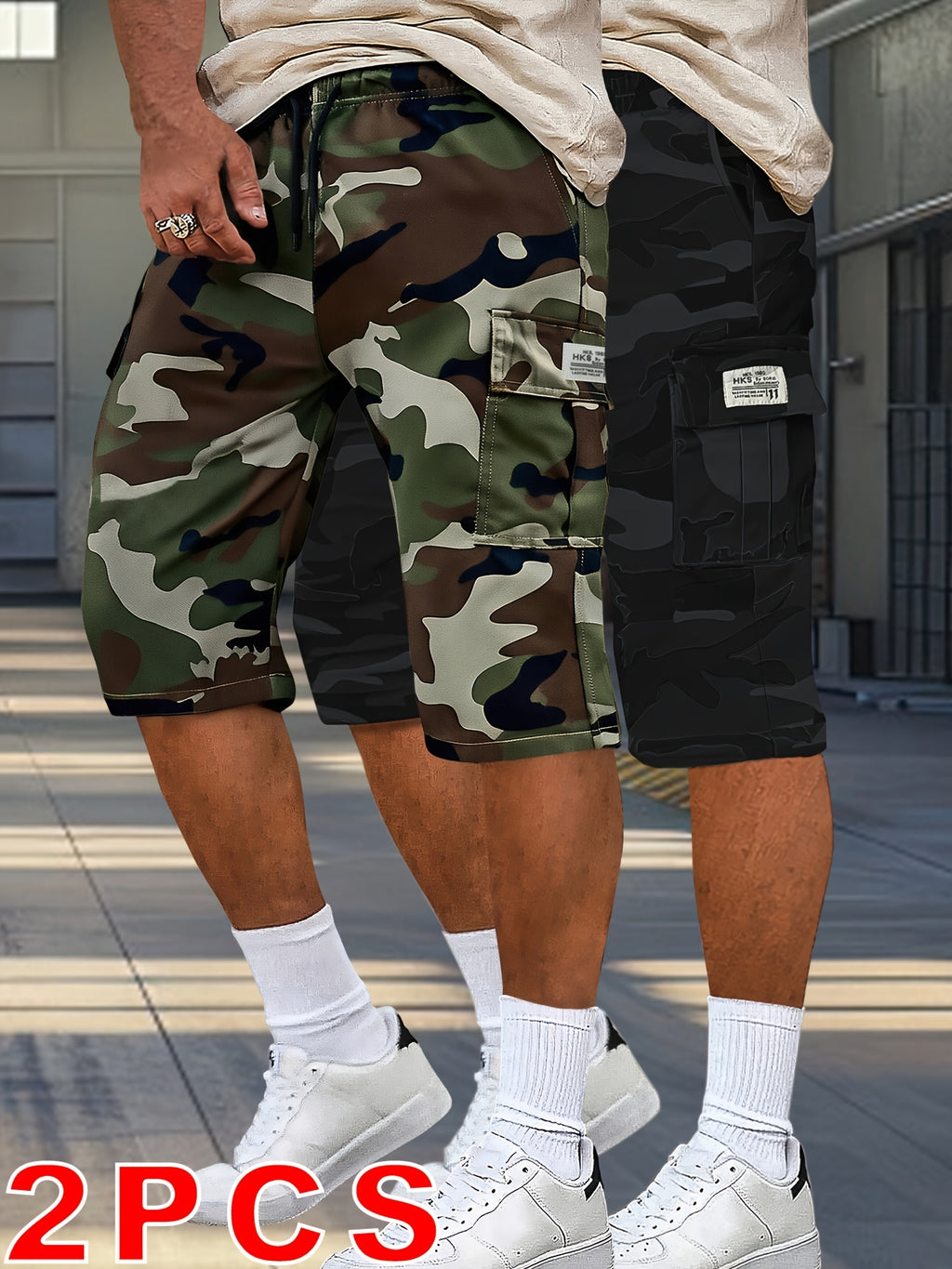 2pcs Men's Outdoor Camouflage Cargo Shorts