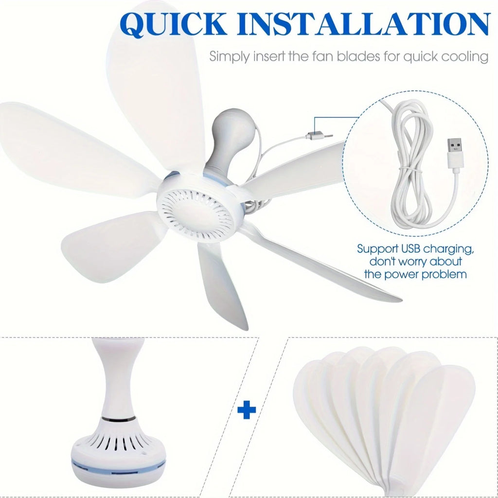 Portable ceiling fan design with usb cord ,great for rechargable powerbank or other USB plug.