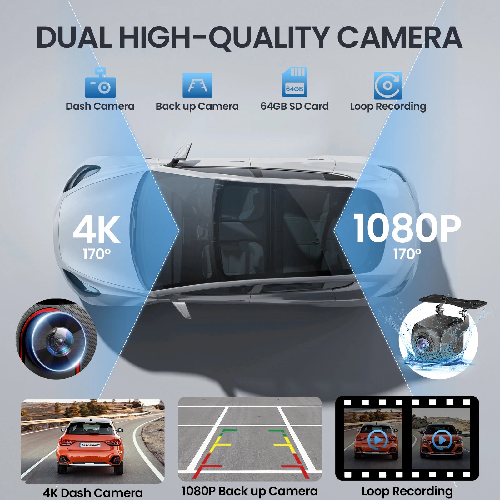 4K Ultra HD Front Camera: Capture sharp, detailed footage with adjustable angles for optimal road coverage.