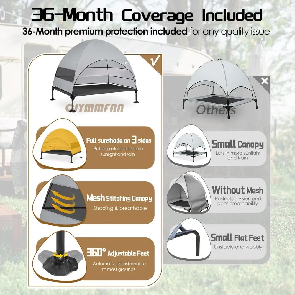 Elevated Dog Bed with Upgraded Canopy, Raised Outdoor Dog Tent with Powerful Anti-Slip Feet, Portable Pet Cot with Larger Shade, Raised Cooling Bed for Camping, Backyard, Beach, Poolside