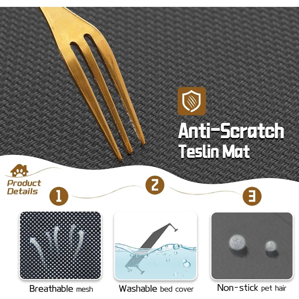 【Chew-proof & Breathable Bed Mat】Features a high-density teslin breathable mesh mat that is chew-proof, anti-scratch, and odorless. It prevents pet hair from sticking and can be easily wiped off or hosed down. With its large canopy, the outdoor cot provides better protection for dogs from the heat and sun.