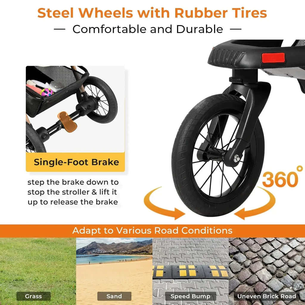 Jogging Pet Stroller, Premium 3-in-1 with Detachable Carrier (Up to 60lbs)