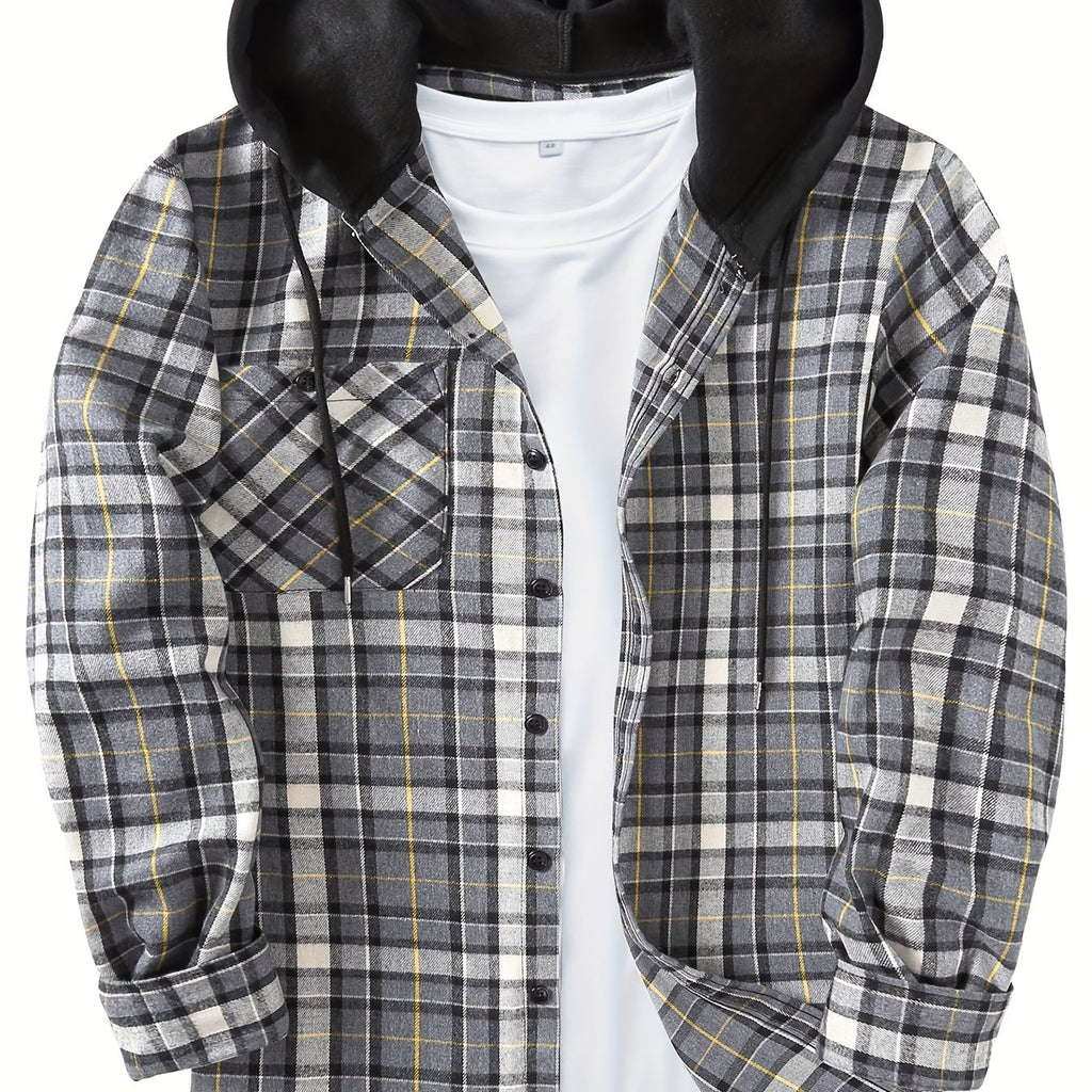 Men's Elegant Plaid Shirt - Button-Front Closure