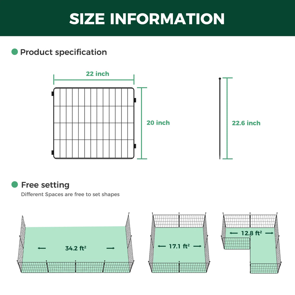 • Versatile Expansion for Every Space: Our playpen showcases an expandable design that does more than grow with your furry friends- it flexibly conforms to various environments. This key feature allows the playpen to be reshaped and extended to fit different spaces and scenarios, from cozy indoor corners to expansive outdoor areas.