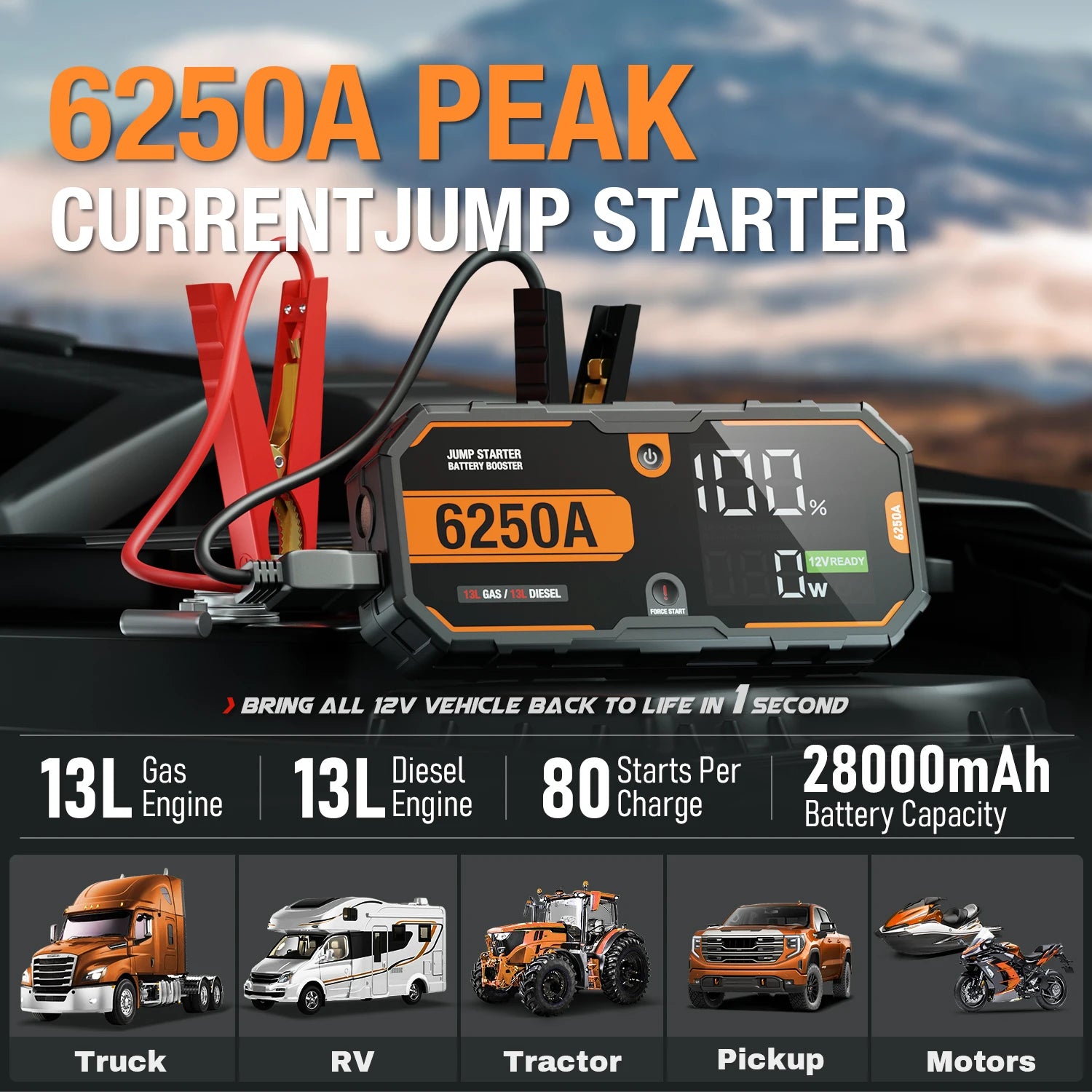 Portable 12V Jump Starter, Diesel Truck, RV, Tractor, Pickup