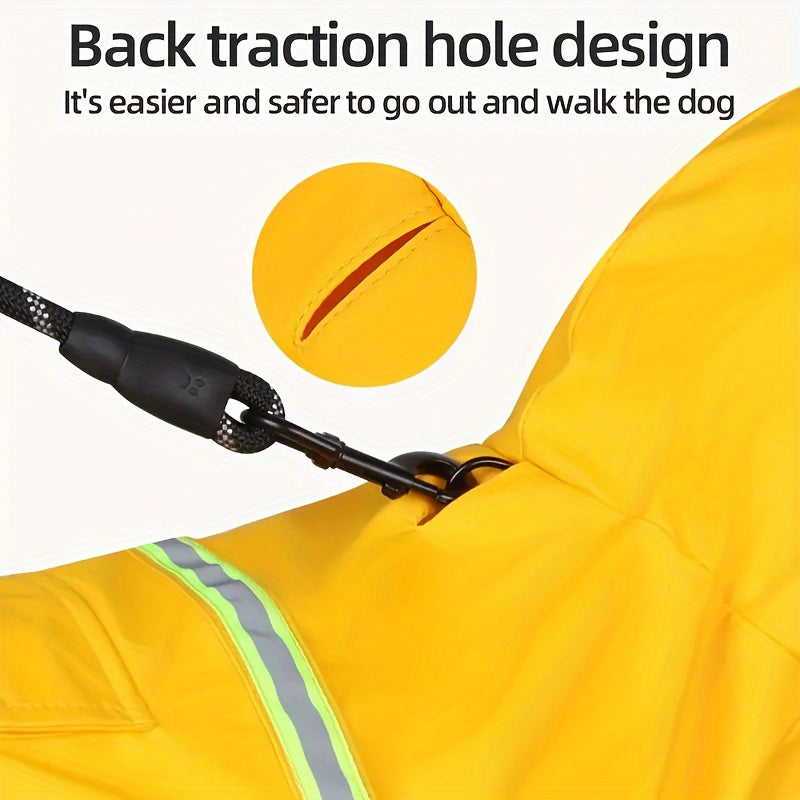 Reflective Waterproof Dog Raincoat with Hood - PU All-Weather Coat with Full Coverage, Easy Snap Closure & Reflective Trim, Comfortable & Dry Pet Jacket for Small, Medium, Large, Extra Large and 3XL Dogs - Ideal for Rainy Days, Wet Walks & Outdoor Activities (Bright Yellow)