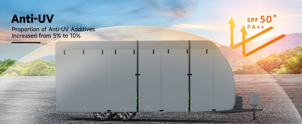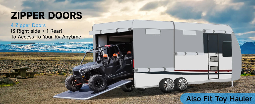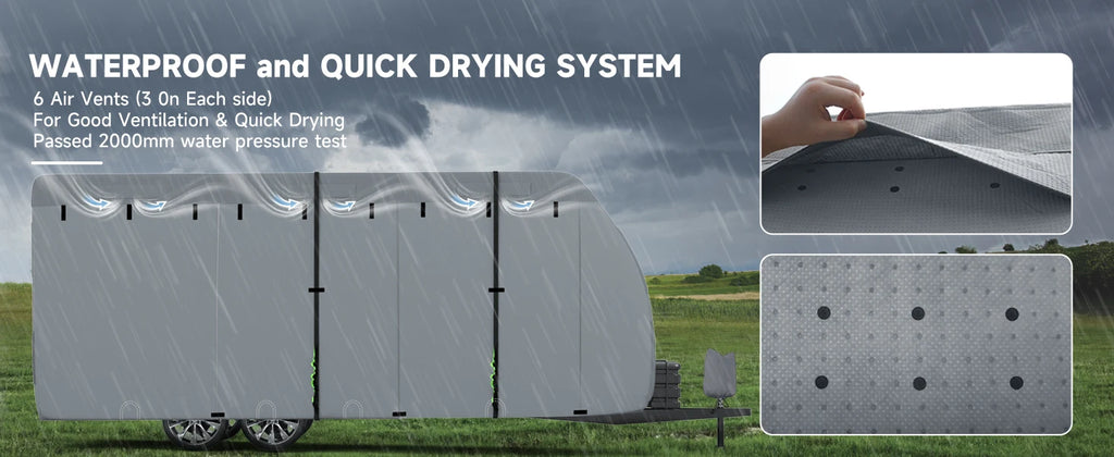 RV Travel Trailer Cover with 4 Tire Covers & Tongue Jack