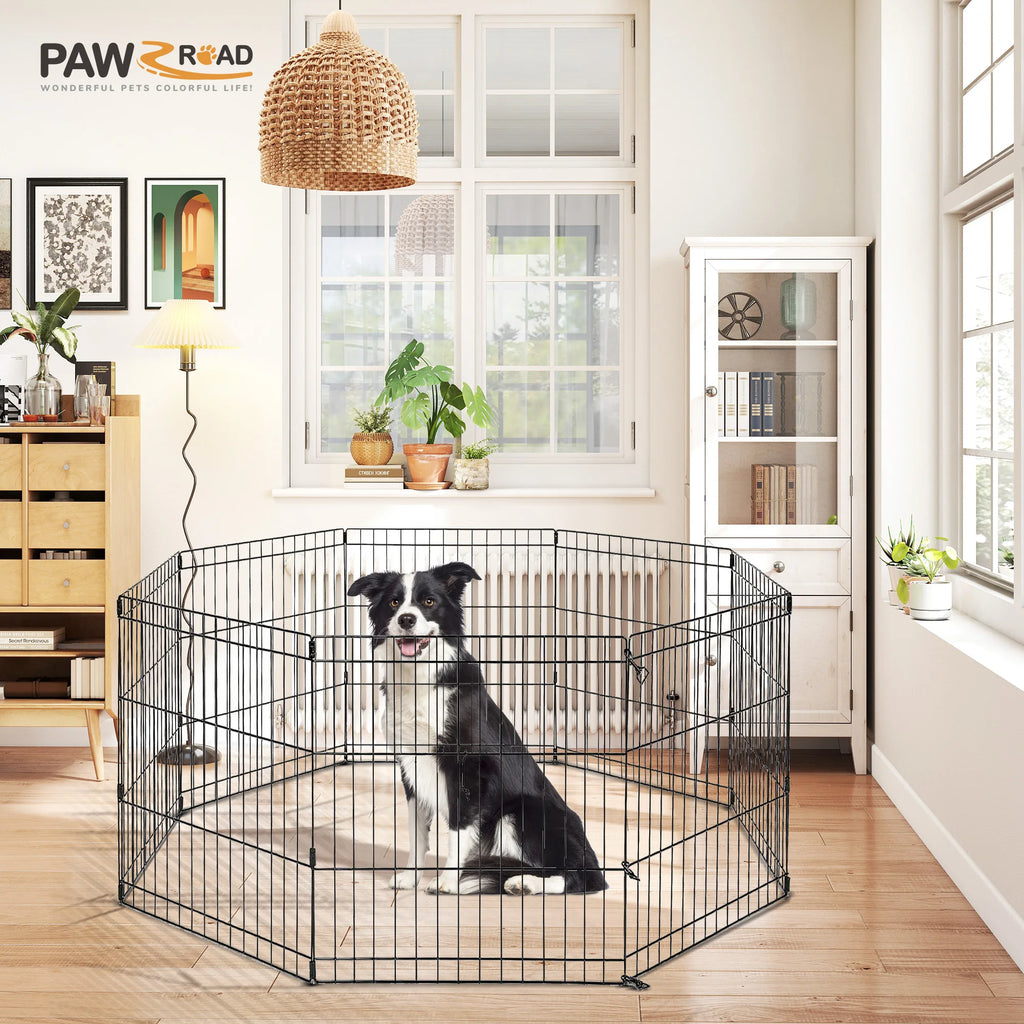 Sturdy Black Octagonal Metal Dog Playpen,Indoor & Outdoor,Foldable Design,Easy Assembly&Storage Single Door or Doorless Options