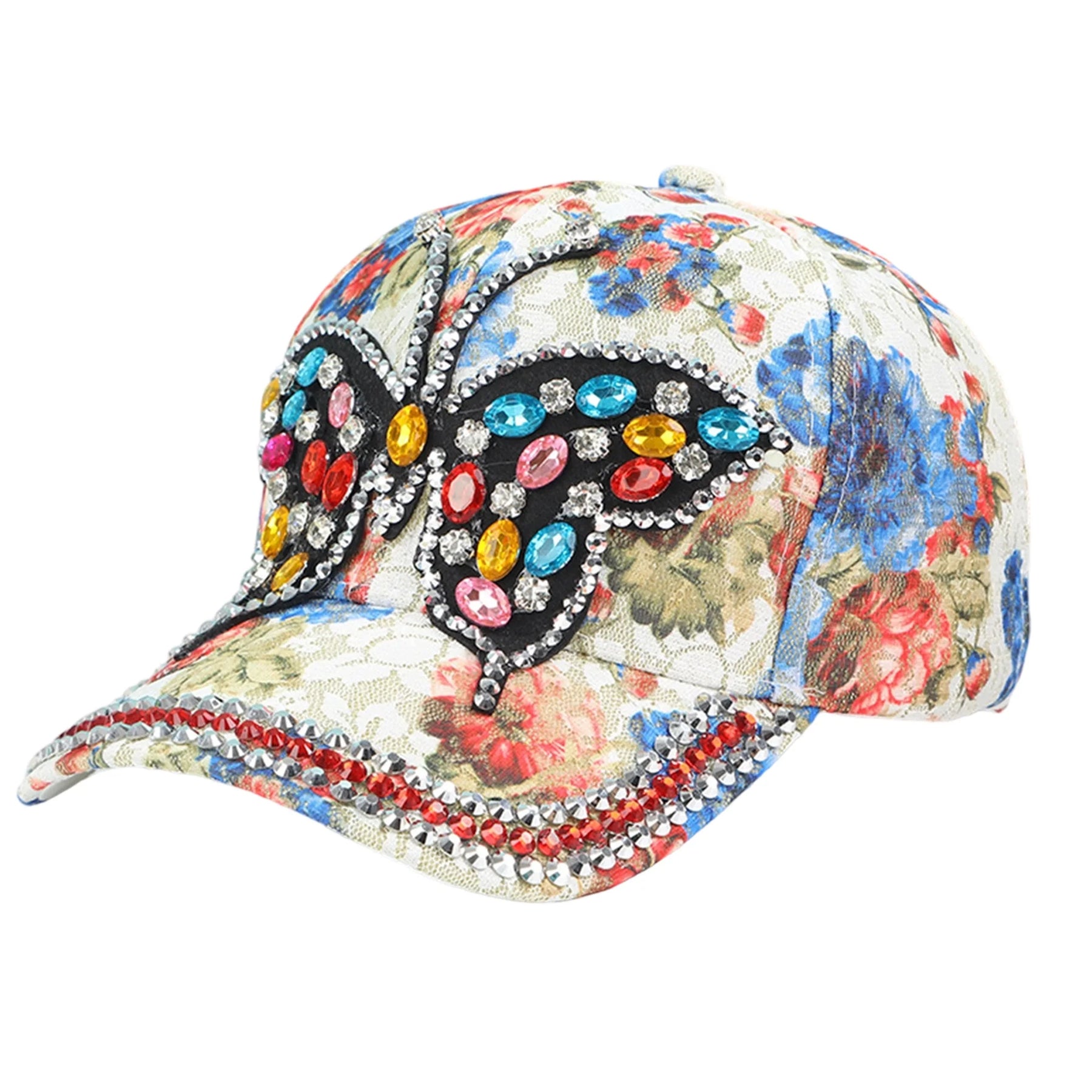 Floral Baseball Caps for Women Glitter Rhinestone Butterfly Trucker Hats Lightweight Dad Hats