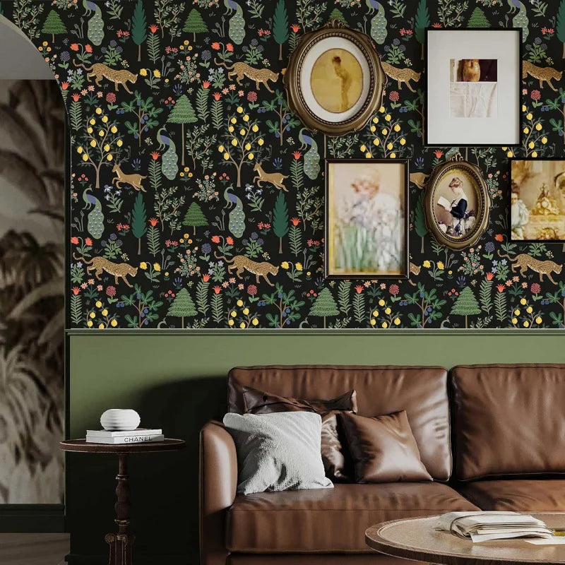 Vintage Black Peel and Stick Wallpaper - Forest Animal Vinyl Self Adhesive Waterproof Tropical Boho Removable Wallpaper Bedroom