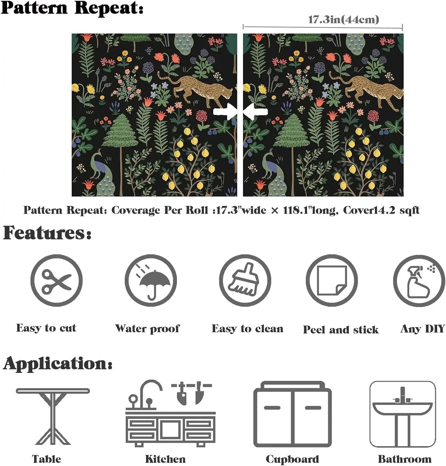 - Decoration: This versatile self adhesive wallpaper is a fit various applications, from stylishly decorating living rooms, bathrooms, kids' rooms, and kitchens, to unleashing your creativity in other decorative projects.