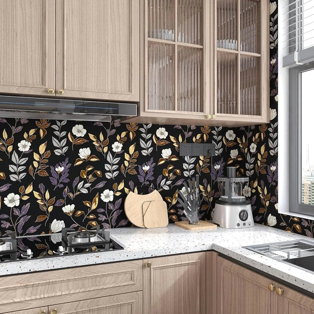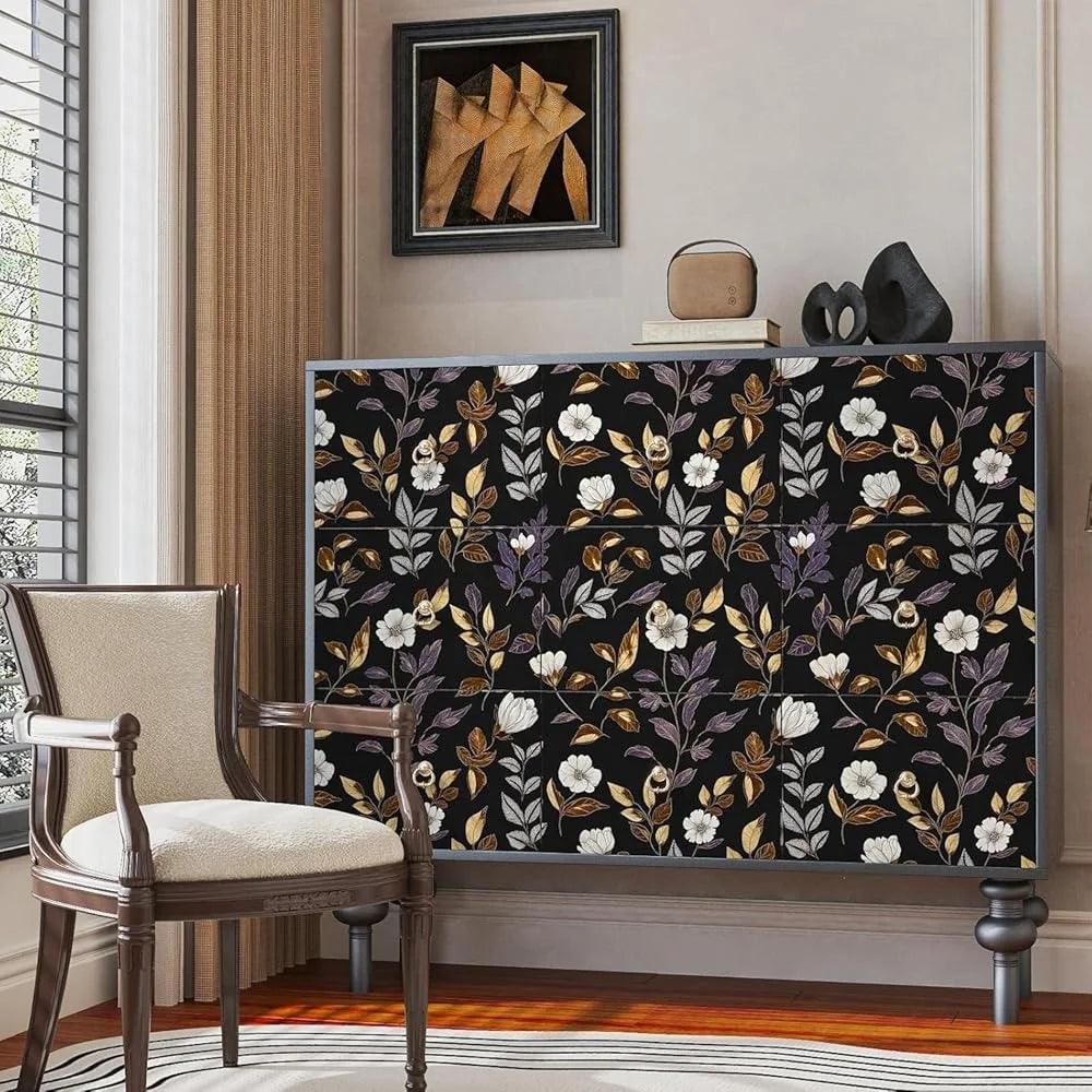 VARIETY OF APPLICATIONS: Peel and stick wallpaper dark floral is suitable for objects with smooth surfaces. Add color to your house, and restore the beauty of your old furniture.